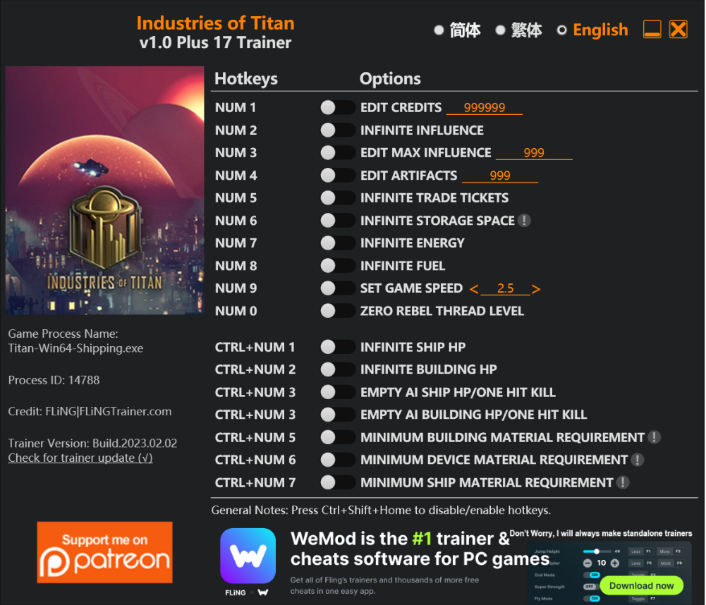 너무 많은 치트는 게임의 재미를 해치므로 적당히 하시기 바라며, 트레이너들은 바이러스로 인식되므로 인식해제를 하여야 제대로 작동됩니다.
