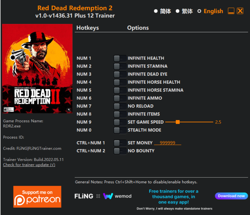 - Health/Stamina/Dead Eye options take effects when values decrease (take damage, use dead eye, running, etc). Note these options don't affect core values, only affect the outer bar values (For example, if you health bar is depleted, you'll lose core health and can be killed).