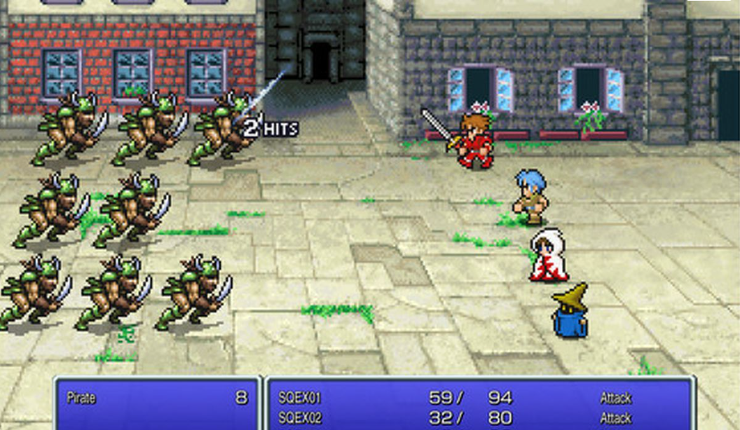 이 게임은 플레이어가 전투에서 파티의 행동을 제어하는 턴제 전투 시스템을 특징으로 합니다. 괴물과 다른 적에 대하여. 각 캐릭터는 고유한 능력과 주문을 가지고 있으며 레벨이 올라감에 따라 개선할 수 있습니다. 플레이어는 게임을 진행하면서 Black Mage 또는 White Mage와 같이 새로운 능력과 주문을 부여하는 새로운 직업을 얻습니다.