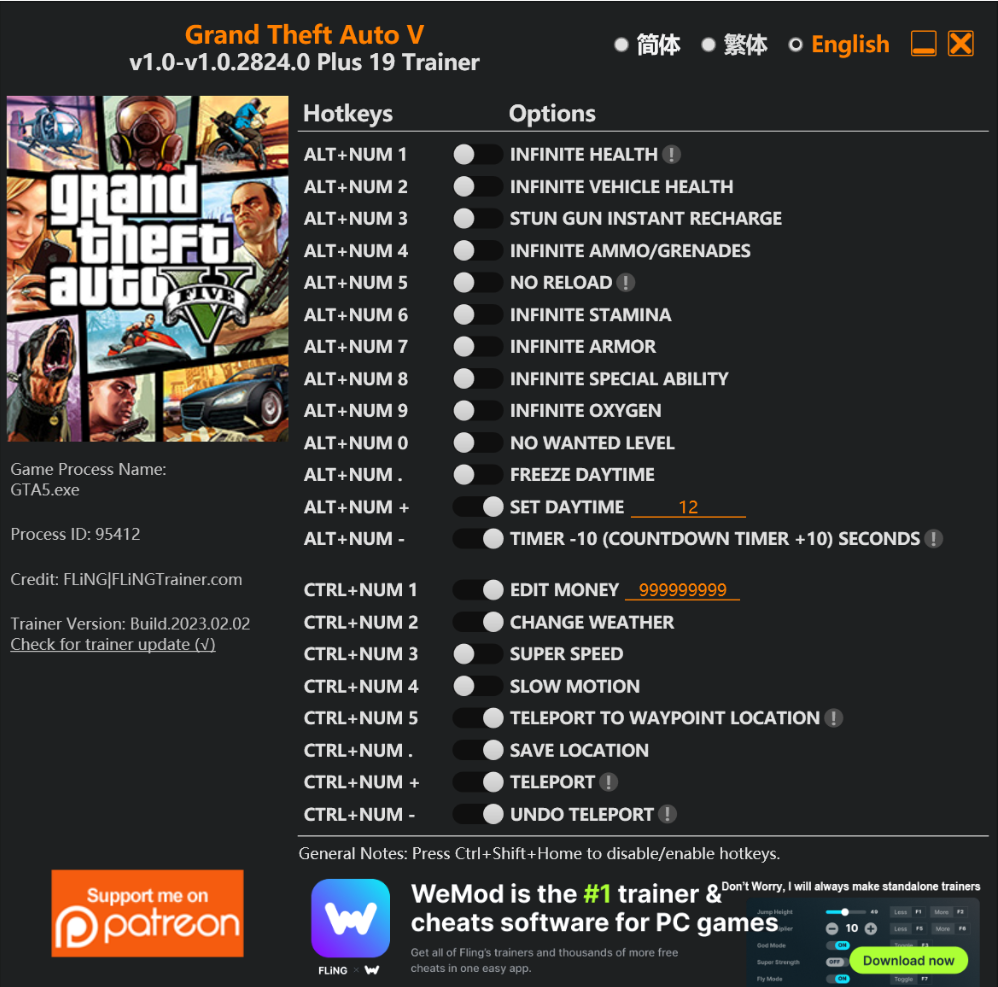 역시 스팀판에 맞게 트레이너 Grand Theft Auto V Trainer 도 안내드립니다.