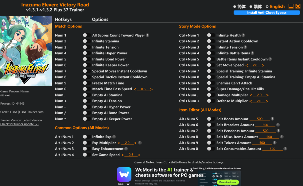 Inazuma Eleven Victory Road v1.3.1-v1.3.2 Plus 37 Trainer.exe